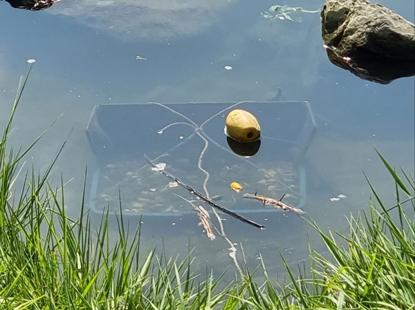 알을 낳기 전 수컷이 꼬리로 바닥 구덩이를 만드는 특성을 고려해 부표도 설치했다.
