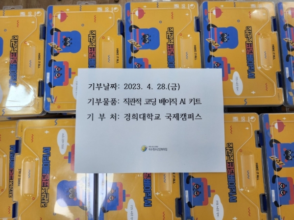 이번에 전달 받은 물품은 지난 2월에 운영한 ‘함께 즐기는 SW·AI 융합 플러스 캠프’에 참가한 청소년들을 위한 것으로 해당 캠프는 교육부와 한국과학창의재단이 주관하고 경희대학교 국제캠퍼스와 연계 운영한 캠프 활동으로 지난 2월 13일부터 20일까지 총 3회기에 걸쳐 운영된 특별 프로그램으로 이번 지원 물품은 직관적 코딩 베이직 AI키트 아두이노 RC카 과학키트 등 약 600만여 만원 상당의 교육용 코딩 실습 키트다.
