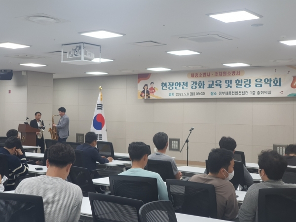 장거래 본부장은 “세종시 소방공무원을 위해 애쓰신 연주단에 깊은 감사인사를 드린다”며 “앞으로도 소속 직원들의 마음건강을 위해 다양한 회복 프로그램을 추진하겠다”고 밝혔다.