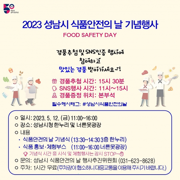 안전한 먹거리 생산·제조·유통·소비에 관한 영업자와 소비자의 관심을 높이기 위해 성남시 식품안전의 날 행사추진위원회가 마련하는 행사다.