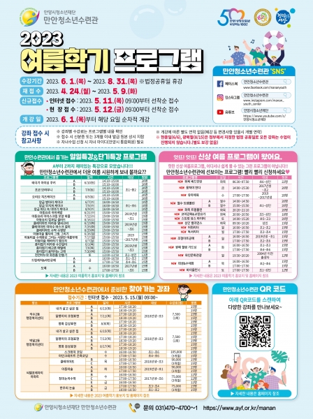[금요저널] 안양시청소년재단 산하 만안청소년수련관은 오늘부터 여름학기 신규 수강생을 모집한다.