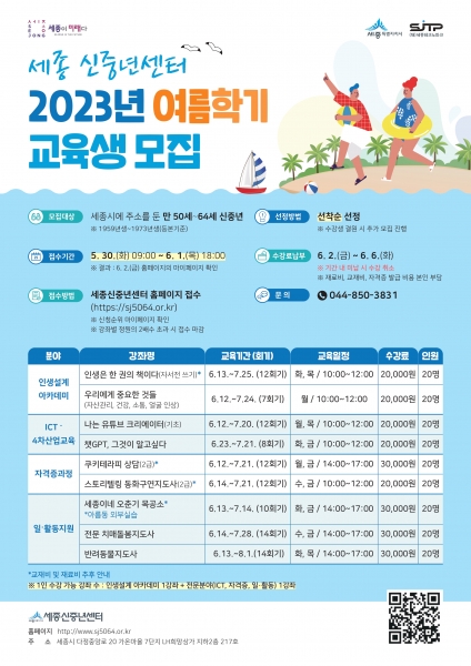 세종신중년센터, 여름학기로 다시 찾아옵니다