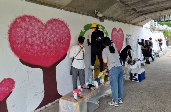 그리고 지난 13일 율목3교에 봄 풍경을 완성하며 벽화그리기 사업을 마무리했다.