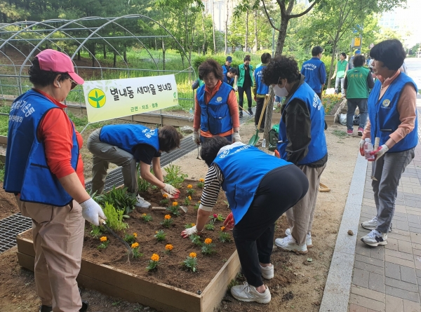 이번 활동에는 바르게살기운동 남양주시협의회 별내동위원회와 별내동 새마을부녀회 회원 25명이 참여해 오랜 기간 방치됐던 가로 화단에 새로이 꽃을 심었다.