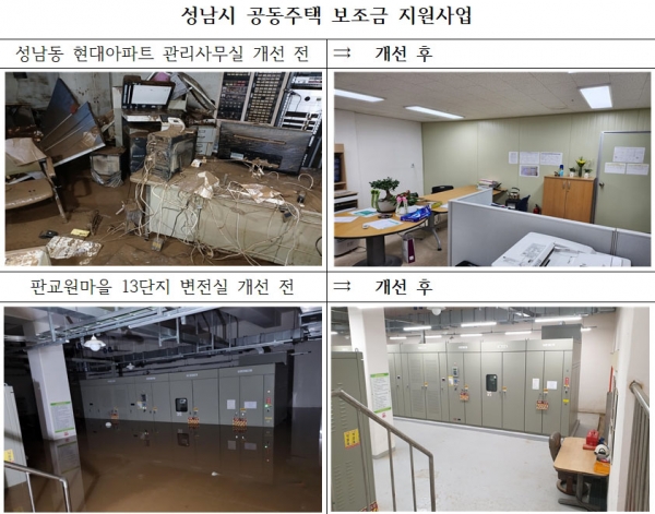 지원금 중 10억원은 지난해 8월 집중호우로 단지 내 기계·전기실 침수 등의 피해를 본 판교동 판교원마을 13단지 등 21곳 아파트단지의 자연 재난 피해복구 지원비다.