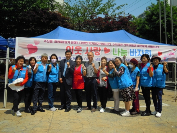 [금요저널] 금정동이웃돌봄단은 16일 금정동 행정복지센터 주차장에서 어려운 이웃돕기 성금모금을 위한 이웃사랑 나눔 바자회를 개최했다.