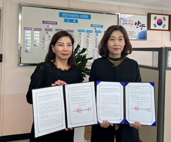 이날 협약식에는 안양시한의사회 정성이 회장과 김명숙 만안구보건소장이 참석해 협약서에 서명하고 협조 방안을 논의했다.