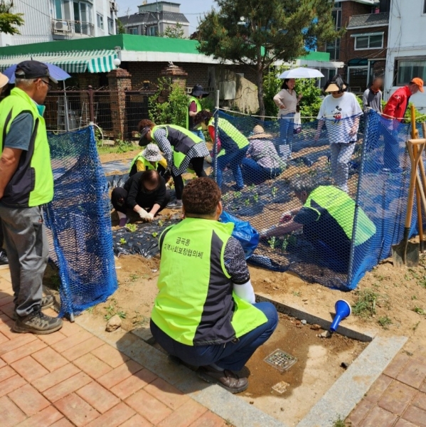 금곡동 지역사회보장협의체는 24통 마을회관의 협조로 부지를 제공 받아 수도관 수리, 밭갈이, 울타리 조성 등 텃밭 운영 기반을 조성했으며 협의체 지정후원금을 통해 참여자들의 개인별 농기구 및 모종 등을 마련했다.