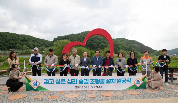 [금요저널] 연천군은 지난 17일 미산면에서 걷고 싶은 십리숲길 조형물 설치 완공을 기념하기 위한 커팅식을 진행했다.