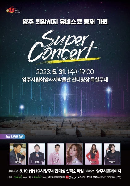 지난 19일 양주시민을 대상으로 진행한 1차 사전예매가 30분 만에 전석 매진되는 기염을 토하며 양주시 사상 첫 방송 콘서트에 대한 기대감을 모으고 있다.
