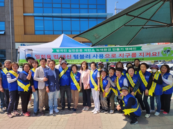 [금요저널] 한국자유총연맹 강화군지회는 23일 강화읍 수협 앞에서 온실가스 줄이기 위한 “저탄소 녹색성장 및 자원순환 실천운동 캠페인”을 펼쳤다.