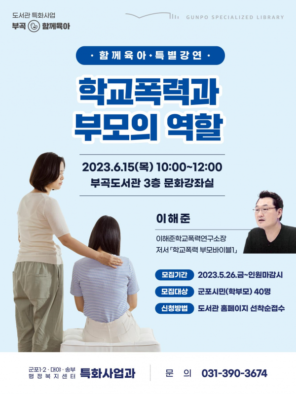 참여 신청은 5월 26일부터 군포시도서관 홈페이지에서 할 수 있으며 학부모 40명을 선착순으로 모집한다.