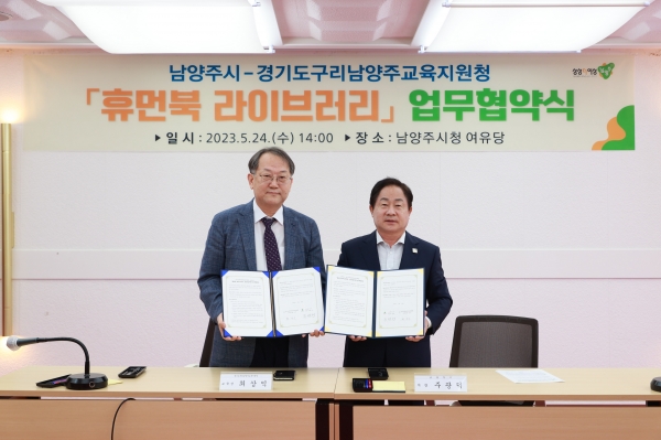[금요저널] 남양주시는 24일 시청 여유당에서 구리남양주교육지원청과 ‘휴먼북 라이브러리’ 운영을 위한 업무 협약을 체결했다.