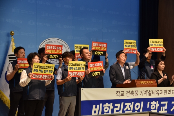 [금요저널] 국회 교육위원회 소속인 강득구 의원과 교육청노조연맹은 25일 9시 40분, 국회 소통관에서 ‘불합리한 학교 기계설비유지관리자 상시 채용 규탄’ 기자회견을 열었다.