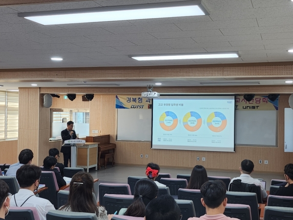 이번 공동 교사간담회는 구미고등학교를 비롯한 11개 과학중점학교 교사 40명과 한국과학기술원, 대구경북과학기술원, 울산과학기술원, 광주과학기술원의 입학담당관이 참석했다.