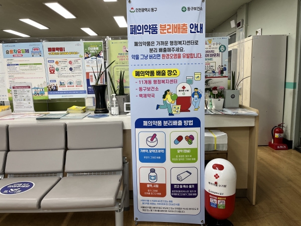 [금요저널] 인천 동구가 보건소 및 지정 약국 중심의 폐의약품 배출장소를 구민 생활 반경 내 11개 동 행정복지센터로 확대 설치했다.