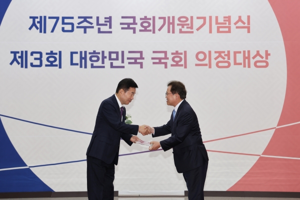 국회사무처에 따르면 31일 진행된 ‘제75주년 국회 개원 기념식’에서 더불어민주당 송기헌 의원은 ‘입법활동 부문 우수의원’으로 선정됐다.