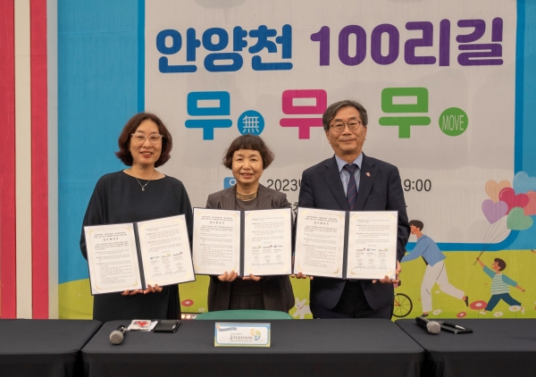 [금요저널] 안양문화예술재단은 지난 30일 안양천 쌍개울 문화광장에서 광명문화재단 및 금천문화재단과 ‘안양천 100리길, 무무무’ 추진을 위한 업무협약을 체결했다고 31일 밝혔다.