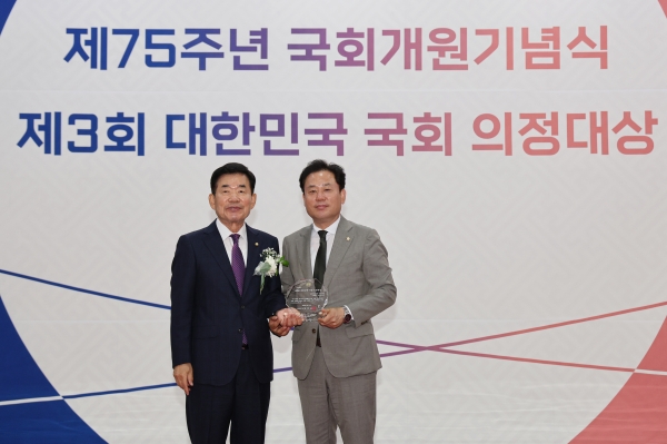 [금요저널] 더불어민주당 송갑석 의원은 31일 제75주년 국회 개원 기념식에서 3년 연속 ‘대한민국 국회 의정대상’을 수상했다.
