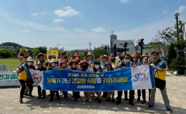 이 외에도 삼덕공원 내 담배꽁초 줍기 플로깅을 시민과 함께 진행해 깨끗한 환경을 조성하고 안양중앙시장을 찾아 금연 홍보물을 배부하는 등 야외활동도 진행했다.