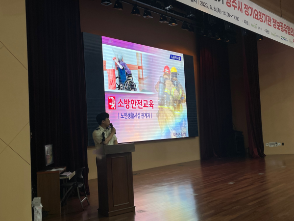 주요 내용은 노인 생활시설의 일반적 특성 화재 현황 및 주요 화재 사례 및 화재 피해 최소화 방안 소방 안전 지식 및 안전 수칙 초기 소화의 중요성 및 화재 시 대피요령 등이다.