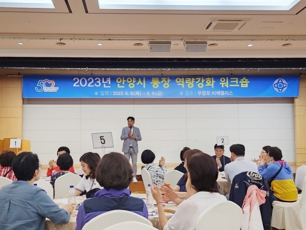 [금요저널] 안양시는 행정 최일선에서 행정 업무를 지원하고 주민과의 가교역할을 수행하는 통장들의 노고를 위로하고 역량 강화 및 화합을 위해 ‘2023년 통장 역량강화 워크숍’을 개최했다고 9일 밝혔다.
