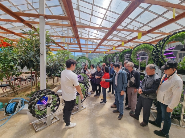교육생들은 농작물 시설 온·습도 관리 방법 등 경영비 절감을 통해 소득증대에 기여할 수 있는 다양한 경영방식에 대해 교육을 받고 도넛팜만의 친환경적으로 생산한 샐러드를 맛을 보고 스마트 팜 시설을 견학하는 일정으로 마무리됐다.