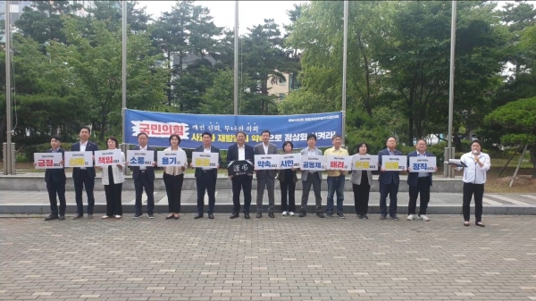 사회자인 윤혜선 의원은 “더불어민주당의 요구는 간단하다 깨진 신뢰, 무너진 의회를 회복하기 위해 지금까지의 오만한 행태에 대해 사과하고 재발방지 약속을 하면 되는 것이다 더불어민주당은 의회 정상화를 위해 최선을 다하겠다”고 강조했다
