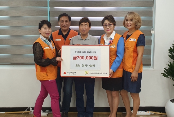 [금요저널] 남양주시 오남읍은 15일 오남 봉사나눔터에서 오남읍 내 취약계층을 위한 후원금 70만원을 전달했다고 밝혔다.