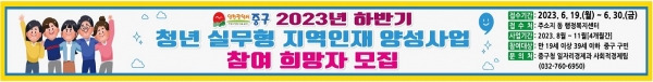 [금요저널] 인천시 중구는 ‘2023년 하반기 청년 실무형 지역인재 양성사업’의 참여자를 모집한다고 19일 밝혔다.