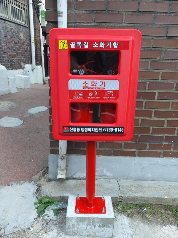 “골목길 화재예방 미리미리” 신흥동, ‘골목길 안심 소화기’ 설치