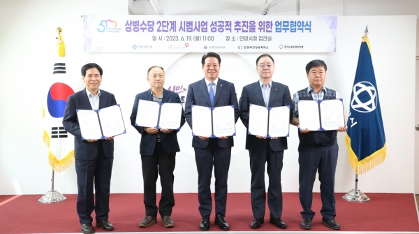 이날 협약식에는 최대호 안양시장을 비롯해 조해곤 국민건강보험공단 안양지사장, 구본상 안양시의사회 회장, 배해동 안양과천상공회의소 회장, 박연수 한국노총경기중부지역지부 의장 등 5개 기관장이 참석했다.