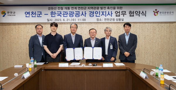 이번 협약에 따라 한국관광공사 경인지사는 연천군이 진행하는 온·오프라인 홍보 마케팅 및 프로그램 운영 등과 관련해 마케팅 및 상품화를 지원하기로 했다.