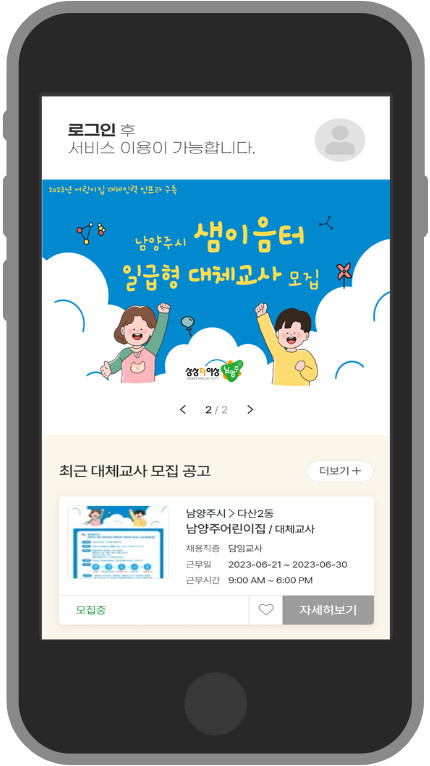 [금요저널] 남양주시는 지난 19일 어린이집 보육 교직원에 대한 처우 개선 정책의 일환으로 대체인력 실시간 온라인 매칭 앱 ‘샘이음터’의 운영을 시작했다고 21일 밝혔다.