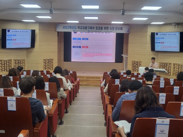 이번 연수는 2023학년도 학교생활기록부 기재 요령 개정 사항 및 주요 점검 사항과 컨설팅 방안에 대한 이해도를 높이기 위해 마련됐으며 학적 처리에 사용하는 용어, 인적·학적사항, 출결 상황, 창의적 체험활동 상황, 교과학습발달 상황, 행동 특성 및 종합 의견, 자료의 보존 등의 내용을 전달했다.