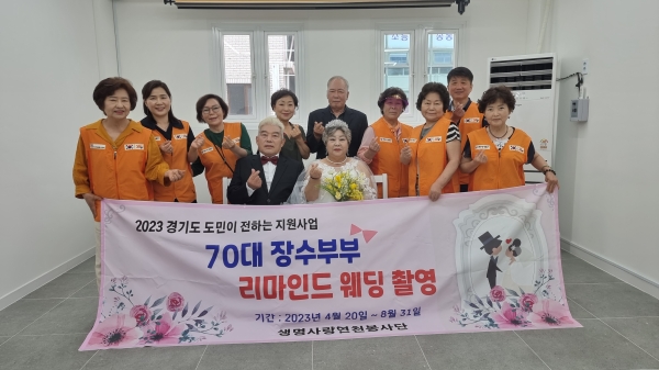 [금요저널] 생명사랑연천봉사단은 20일 전곡읍에 위치한 미용실 및 사진관에서 70대 노부부 5커플을 대상으로 리마인드 웨딩 촬영을 진행했다.
