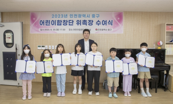 [금요저널] 인천시 중구는 지난 20일 제2청 해송관에서 올해부터 구립 어린이합창단의 일원이 된 신규단원 8명에 대한 위촉장 수여식을 개최했다.