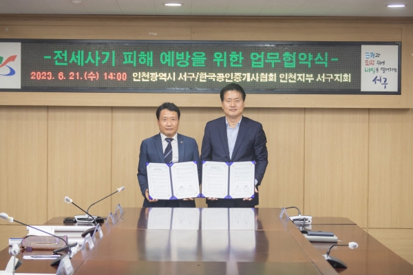 서구 관계자는 “최근 전국적으로 늘어나는 전세 사기와 관련 주민들의 주거 안정에 대한 불안을 줄이고 나아가 투명한 부동산 거래 질서 확립 등을 위해 이번 협약을 체결한다”고 설명했다.