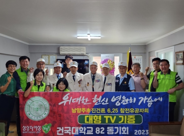 [금요저널] 건국대학교 82학번 동기회는 지난 24일 남양주시 진건읍 6.25 참전유공자회에 대형 TV를 기증했다.