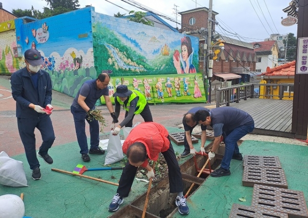 [금요저널] 인천시 중구 개항동 행정복지센터는 지난 23일 개항동 상가번영회원들과 함께 여름철 집중호우 침수 피해를 대비하기 위한 ‘관내 도로변 빗물받이 정화 활동 및 준설’을 진행했다.