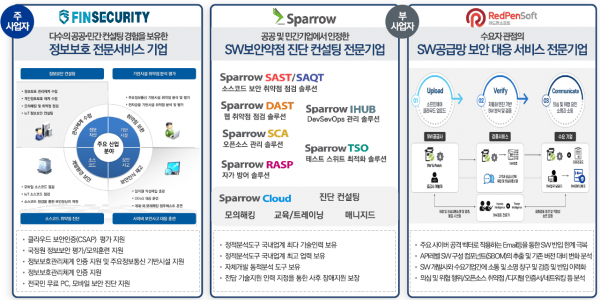 이번 사업에는 국내 정보보호 전문기업인 ‘핀시큐리티’,‘스패로우’,‘레드펜소프트’가 참여해 국산 보안 솔루션, 업무용 SW 등을 대상으로 개발부터 운영에 이르는 전체 공급망 체계를 분석하고 공급망 전단계에서 각 대상 SW에 대한 SBOM 생성, 보안 취약점 분석 및 조치, 보안 컨설팅 등을 제공한다.