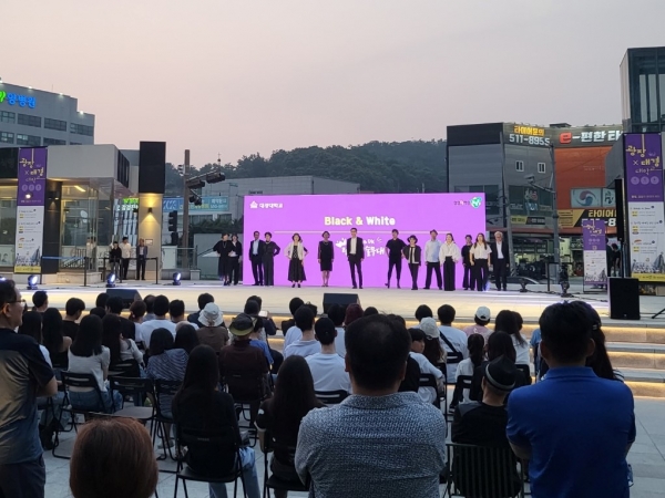 이날 대경대학교 K-POP과, K-모델연기과, K-연극영화뮤지컬과 학생들을 그간 배운 다양한 재능으로 공연을 펼쳤으며 시민 참가자들은 ‘써니’ OST에 맞춰 영화의 주인공들처럼 청바지와 흰 셔츠를 입고 포인트 액세서리를 더해 첫 번째 스테이지 ‘Jean’과 두 번째 스테이지 ‘Black&White’를 선보였다.