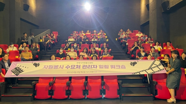 [금요저널] 안양시자원봉사센터는 지난 6월 29일 CGV 평촌점에서 33개의 자원봉사 수요처 관리자 51명이 참석한 가운데 힐링 워크숍을 진행했다고 3일 밝혔다.