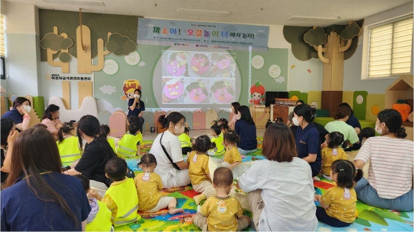 이번 영양교육은 어린이집 12개소 총 144명의 사전 신청을 받아 진행됐으며 만 1-2세 영아를 대상으로 어려운 주제의 교육 대신 배추, 당근 등 다양한 채소를 눈으로 보며 냄새를 맡고 먹어보는 등 오감 활동을 통해 채소에 대한 거부감을 줄이고 채소를 놀이로 편하게 접할 수 있도록 구성됐다.