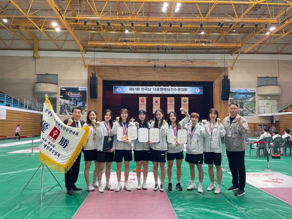 먼저 오혜미, 조아로 문세희, 김현진으로 이뤄진 ‘여자 플러레팀’은 8강에서 서울시청을 45대 42로 준결승에서 강원도청에 38대 34로 이기며 결승에 올랐다.