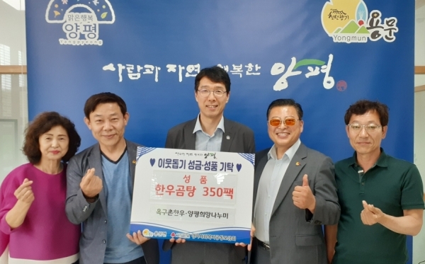 권용진 용문면장은 “나눔을 통해 이웃사랑 실천에 앞장서는 김세현 옥구촌한우 대표님과 임청우 양평희망나누미 회장님께 감사드린다”며 “기부해주신 한우곰탕은 관내의 저소득 취약계층이 건강하게 여름을 보낼 수 있도록 공공의 복지가 닿지 못하는 복지사각지대 분들께 잘 전달하도록 하겠다”고 말했다.