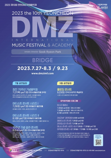 올해로 10회째를 맞이하는 연천DMZ국제음악제는 음악을 통해 남과 북, 이념과 이념, 과거와 미래를 연결해 우리의 미래세대들에게 평화와 희망의 메시지를 전하는 ‘BRIDGE’ 역할을 하겠다는 계획이다.