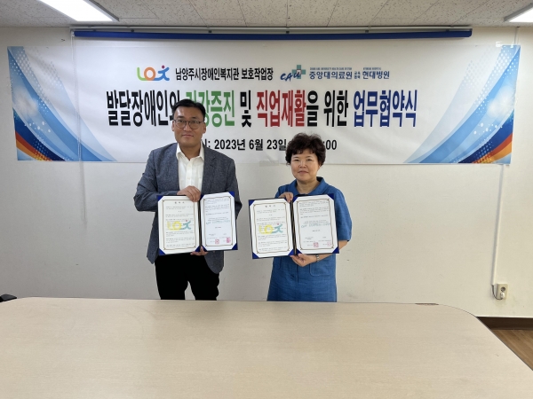 [금요저널] 남양주시장애인복지관 보호작업장과 남양주 현대병원은 지난달 23일 발달장애인의 건강증진 및 직업재활을 위한 업무 협약을 체결했다.