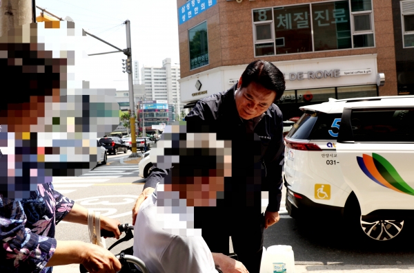 최대호 안양시장, 현장 행보 ‘착한수레’ 이용 시민에 승하차 지원