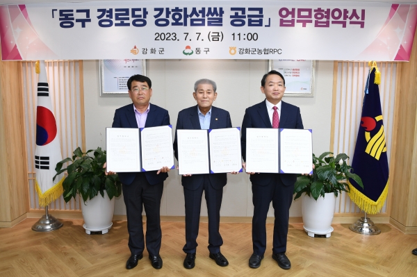 강화군과 인천 동구는 7일 ‘동구 경로당 강화섬쌀 공급’을 위한 업무협약식을 개최했다.